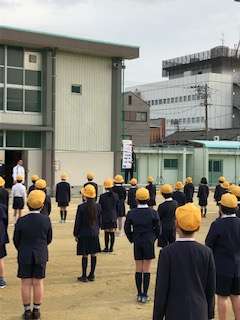 月に1回、避難訓練を実施している子どもたちにとって地震は他人事ではなく、身近なものとなっています。日ごろから備えをすることの大切さを堀尾校長先生が話してくださいました。