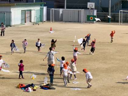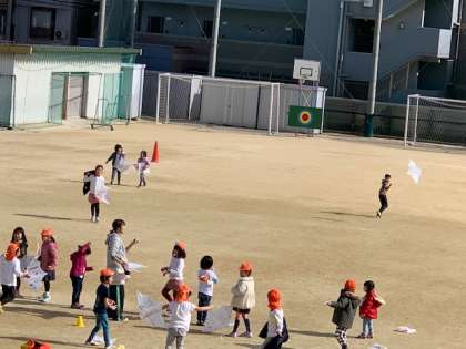 今年も隣接する「福音幼稚園」の年小・年中・年長の園児が来校し、凧揚げを楽しんでいました。