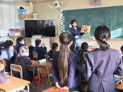 先週、「わくわくお話プレゼント」がありました。今月も教員が各教室をまわって本の読み聞かせを行いました。