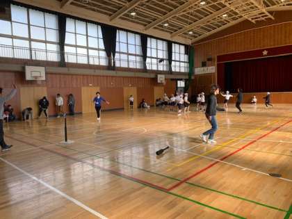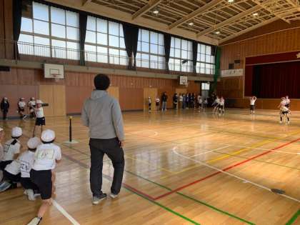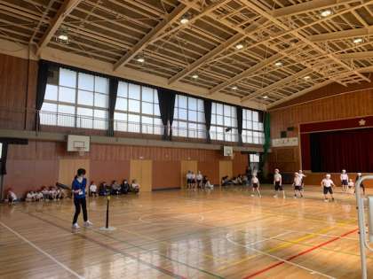 おうちの方々の強打にも子どもたちはびっくりしていました。12対13の大接戦で楽しい時間をおうちの方々と過ごすことができました。