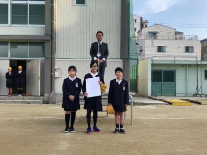 九条南小学校の「みなみ」の言葉のように、「みんながかやがく」姿、「なかまといっしょに」がんばる姿が見られた全校朝会でした。