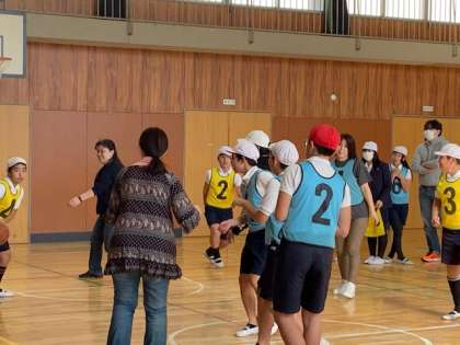 第1部では、親子バスケットボール大会を行いました。親子で同じチームになり力を合わせてゲームに挑みました。家族の皆さんのはつらつとしたスーパープレイに、講堂中に歓声が響き渡っていました。