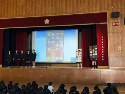 スマホ・インターネットの活用法など、情報モラルについて全校集会を行いました。