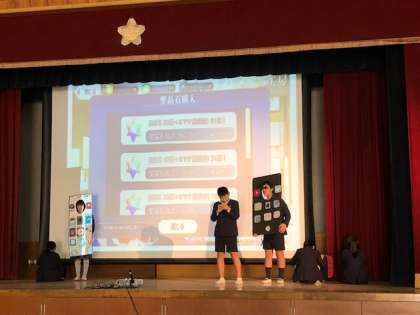 「OSAKAスマホサミット2018」で発表した取り組みや実践事例を1年生から6年生まで全校児童に分かりやすく工夫・改善し、笑いあり、問題提起ありの充実した内容で発表が行われました。