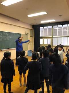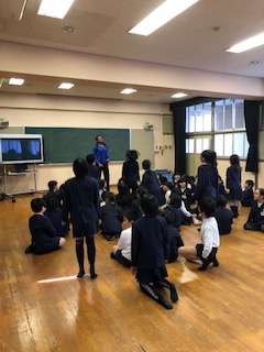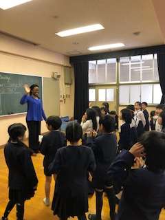 終わりのあいさつでは,2年生全員で「サンキューオリビア先生!」と大きな声で言いました。