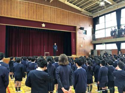 校長先生のお話は、「今日は嬉しいお知らせがたくさんあります。」から始まり、転入生の紹介がありました。九条南小学校の仲間が一人増えて子どもたちも嬉しそうな表情をしていました。仲良くしましょうね。
