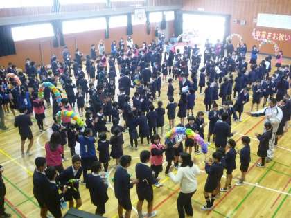 6年生の卒業をお祝いする会を行いました。在校生全員と6年生とが一緒に行う、最後の学校行事です。