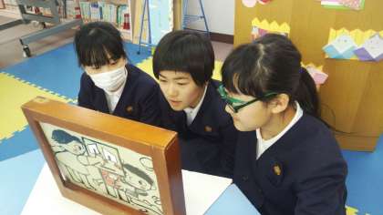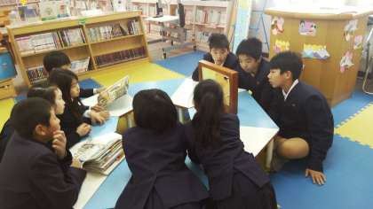 今週の紙芝居タイムも6年生の図書委員が担当しました。今週のお話は「ロボットカミイ ちびぞうの巻」と「なんにもせんにん」です。もうすぐ卒業するお兄さん、お姉さんに読んでもらう機会は今日が最後ですが低学年の児童にとって楽しい時間となったようです。