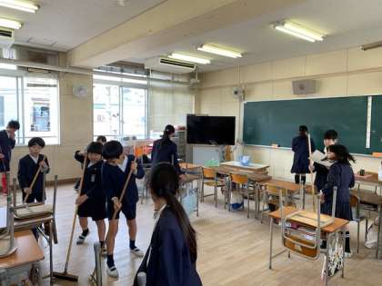 今年度のたてわり清掃が今日で最終となりました。6年生のリーダーを中心に、低学年にていねいに掃除の仕方を教えたり、一緒に会話を楽しんだりとたてわりで活動するメリットがたくさん見られました。
