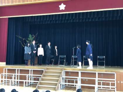 はじめに、5年生の児童3名から教職員一人ひとりに向けて、別れの言葉がおくられました。子ども達の堂々とした言葉や、温かい拍手がエネルギーとなり、教職員は新たなステージでもご活躍されること思います。