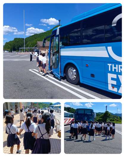 5年生を乗せたバスは順調に進んでおり、道の駅「但馬のまほろば」に到着。最後のトイレ休憩を済ませ、ハチ高原に向かいます。