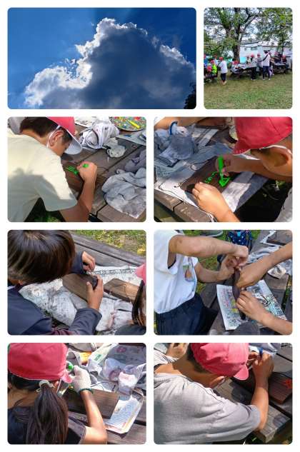 太陽が雲に遮られ、爽やかな気候に高原が包まれています。子どもたちの焼き板づくりは、板磨きを終えて、金具や絵付けに移っています。林間の思い出として、高原の風景を描いている子がとても多いです。