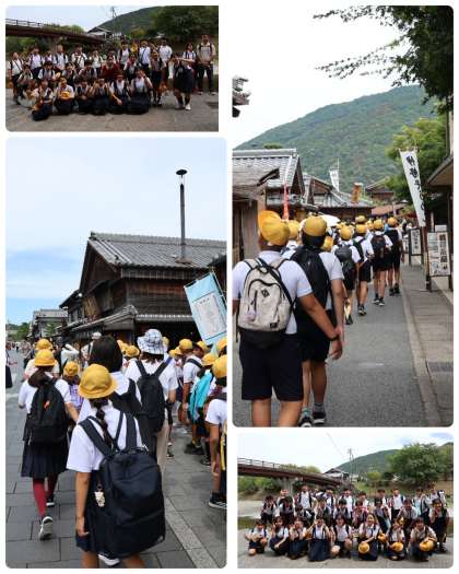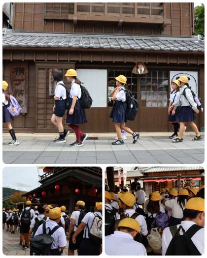 6年生は、昼食を終えて「おかげ横丁」に来ました。集合写真を撮影して、これよりグループに分かれて、おかげ横丁、おはらい町を回ります。