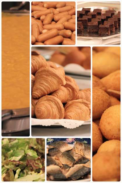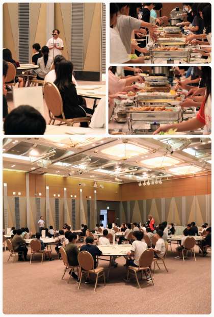 朝食の時間になりました。今日一日の活動のために、しっかりいただきます。朝食は、和食、洋食を取り揃えたバイキングです。