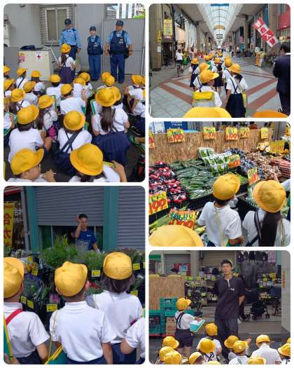 2年生は、町たんけんに行きました。九条交番、スーパー八百鮮、花屋さんに行きました。