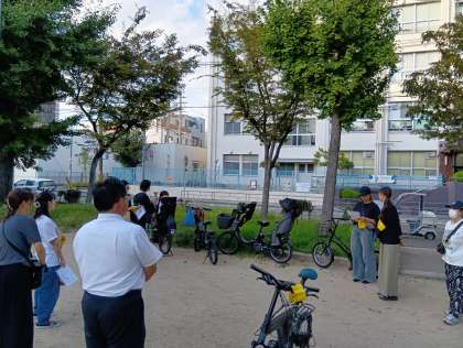 九条南公園に保護者や教職員が集合し、グループに分かれて校区内の巡視を行いました。子ども達の安全のために多数のご参加をしてくださりありがとうございました。