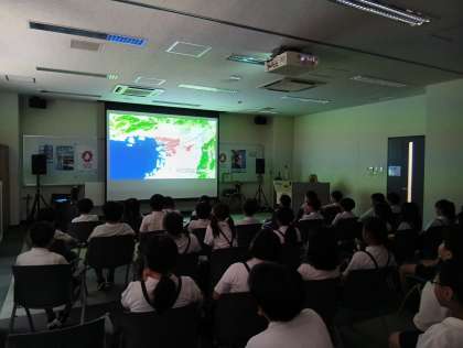DVD鑑賞では、まず大阪の地形の成り立ちを学習しました。大阪は、「水」と密接に関わっている地形です。