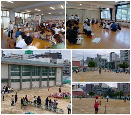 4年生は、「世界の遊び」を行いました。子ども達が、グループごとに世界の遊びを紹介し、保護者の方と一緒にその遊びを楽しみました。
