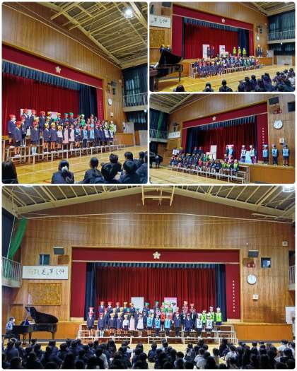 今日の4時間目に、1年生の学習発表会を全学年で鑑賞しました。1年生は、観客が多くて少し緊張していたみたいですが、劇が始まると、一人ひとりとても大きな声を出していて、ジェスチャーも素敵で他の学年はにこにこしながら鑑賞していました。1年生の堂々とした発表に、元気をもらうことができました。