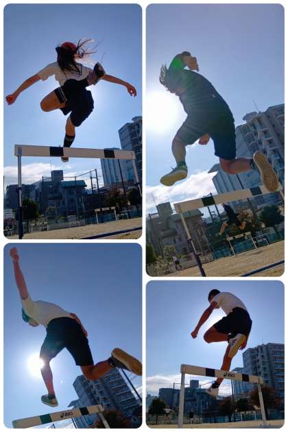 6年生は、体育の時間にハードル走をしていました。まだまだ不慣れで、どうしても高く跳んでしまいます。踏切位置を意識させて、「高く」から「前へ」というように子どもたちの意識を改善し、低く跳べるようにしていきたいと考えています。