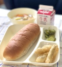 ずいきは子どもたちにはあまり人気のない食材ですが、豚肉とともに赤みそベースの少し甘めの味付けをすることで、ごはんにとてもよく合う味付けに仕上げられています。ずいきの食感が、豚肉の食感に少し変化を与えているようで、なかなかのマッチングです。子どもたちが苦手と感じる食材も、調理や味付けの工夫で美味しく食べられるように工夫されています。