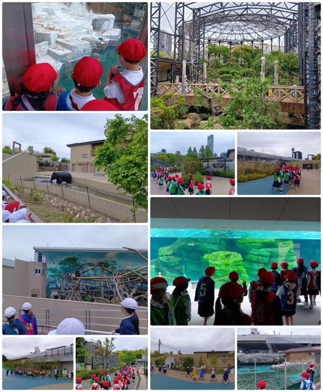午後からの見学は、午前のエリアとは反対側に行きました。3体の大きな象や、チンパンジー、たくさんのペンギンや白クマがいました。子ども達は、たくさんの動物達を見て、大興奮していました。ただ見るだけではなくて、担任の先生が各エリアで動物の説明をしてくれたので、新しい発見もありました。これにて見学は終了です。