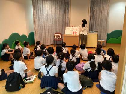 「一生懸命に話を聞いていくれたお礼に読み聞かせをするね!」子どもたちは大喜び。大型の本を読み聞かせしてくださいました。最後は、自分の読みたい本を選んで、読書を楽しみました。