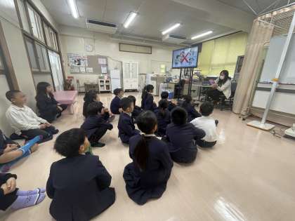 保健室で身長体重を測った後、保健の先生より「いいタッチわるいタッチ」の講話をしていただきました。