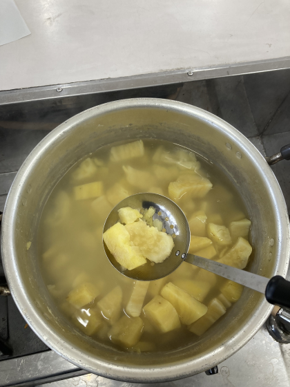 2年生は昨日、生活科の学習で育てたさつまいもを調理し、おいしくいただきました。あんなに固かったさつまいもも、調理されると柔らかくなり、今までの学習で知っているさつまいもと比べて、驚いていた児童もいました。そして、いつもと違った感触を楽しみました。