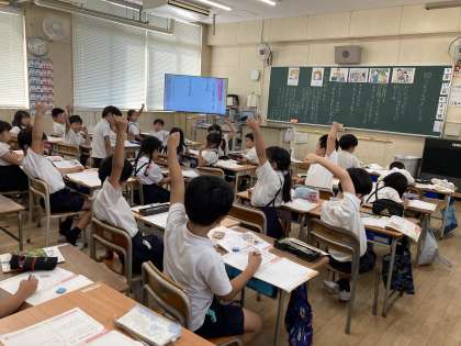クラスでも英語の短時間学習を頑張っています。さあ、明日はどんな学習なのかな?お楽しみに。