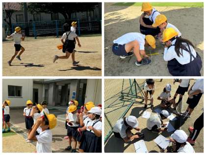 まず初めに、かげふみ鬼ごっこをしてかげのでき方を観察するところから始まりました。そして、かげはどんなところにできるのか遮光版を使って太陽の向きを調べました。はじめて遮光版を使った子どもたちは「太陽を見れた!」「かげの反対側に太陽がある!」と大盛り上がり!