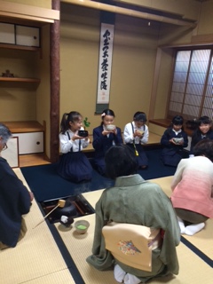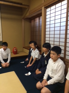 4年生は出会いふれあい教育で茶道体験を行いました。福音幼稚園の水嶋園長先生のご自宅におじゃましてお点前をいただきました。季節の和菓子とともに静かなお茶室でいただくお抹茶は、子どもたちの心にもしみこんでいったことと思います。