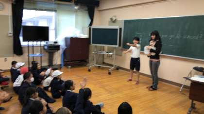 図書ボランティアのよもよもさんによるお話会が、1年生でありました。