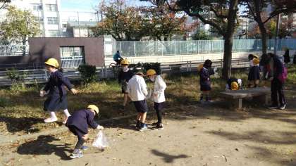 12日の木曜日、3年生は総合的な学習の時間に取り組んでいる「九条南公園パワーアップ大作せん」で、2回目の公園調査に出かけました。