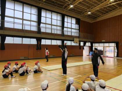 「走る」「跳ぶ」「投げる」運動の基礎基本の動きを、遊びを通して身に付けていく内容です。子どもたちはとても喜んでいました。 -