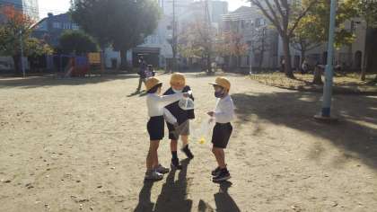 いちょうの落ち葉がたくさん落ちている九条南公園に、秋見つけに行ってきました。