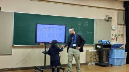 今日は、今年最後のシェーン先生による外国語活動がありました。12月にふさわしく、クリスマスシーズンによく使われる言葉を学習しました。知っている言葉もたくさんあって、みんなリズムに乗って発音練習できました。絵にあう英語を線で結ぶワークシートやビンゴゲームなど、最後の活動を思い切り楽しみました。