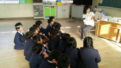 高学年の子どもたちも読み聞かせを毎月楽しみにしています。本の世界を想像し、熱心に聞き入っていました。