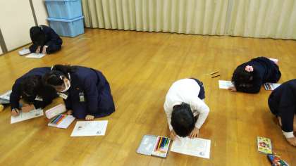 はじめは、とても緊張して「書けない〜」となげいていたみなさんでしたが、書き終わったら、「いいのができた!」と納得の表情でした。