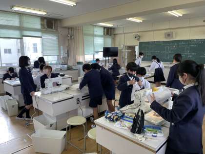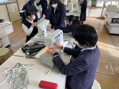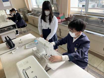 6年生は、卒業をお祝いする会で下級生にプレゼントをする、ぞうきんを作りました。後輩たちのことを考えながらていねいに作っていました。