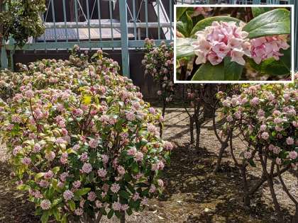 正門横の沈丁花が満開です。よい香りが漂ってきます。