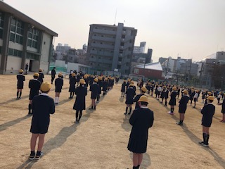 今年度最後の全校児童そろっての全校朝会を行いました。6年生にとっては、小学校生活最後の全校朝会でした。
