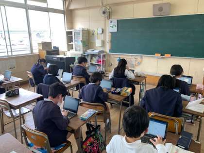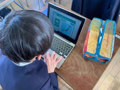 今週の月曜日より、2年生から6年生までの児童に、1人1台のタブレット端末が導入されました。各学年、ログインしたり学習を進めたりしています。