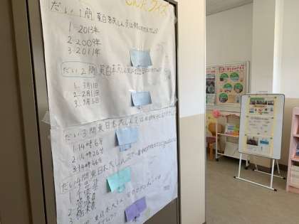 4年生では、この1年間を通して学習を進めてきた「防災・減災」について、学んだことをまとめて、学校の防災・減災コーナーに掲示することにしました。