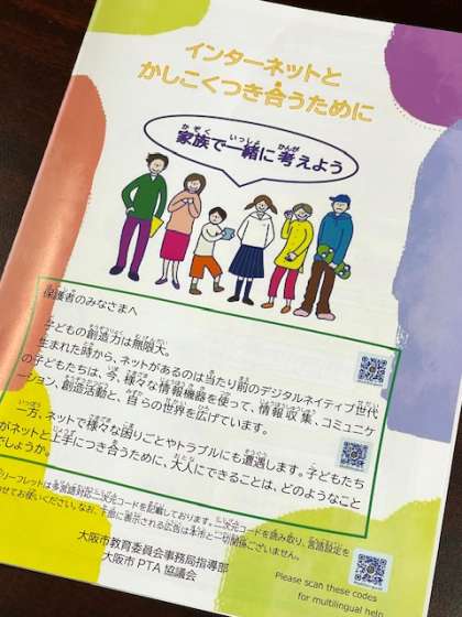 大阪市教育委員会と大阪市PTA協議会より、「インターネットとかしこくつき合うために」という冊子が配られています。少し前に、アメリカで母親が子どもにスマホを持たせる際に交わした「スマホ18の約束」というものが話題になりましたが、子どもたちをトラブルから守るために、家庭でしっかり約束事を決めていただくことは欠かせません。この冊子をお子さんと一緒に読みながら、スマホなどの情報端末との付き合い方について、お子さんと約束事を決めていただければと思います。