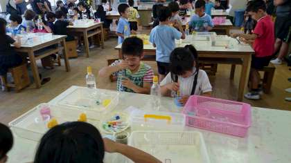 カラフルなジュースが出来上がり、「これは何あじかなぁ」という会話が聞かれました。 -