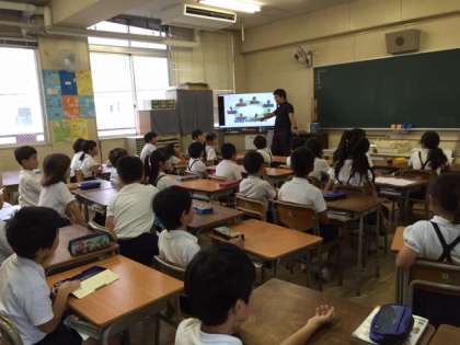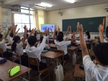 登校後の子どもたちは元気に「English Time」を楽しんでいました。1年生はcolorやalphabet、2年生はfishing storyを見たり聞いたりしながら、大きな声で英語の表現を繰り返し練習していました。