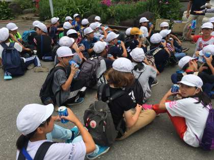 フィールドビンゴの後、スポーツドリンクをいただきました。歩き疲れた体にはたまりません。みんなCMに出演できそうなぐらい気持ちのいい飲みっぷりでした。