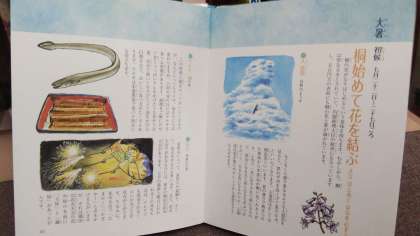 『夏の一番暑い時期で、立秋の前の18日間のことを「土用」と言い、土用の丑の日にウナギを食べる習慣があります。海や風呂に入ると、夏負けしないとも言われています。』(「こども歳時記 12か月」より)