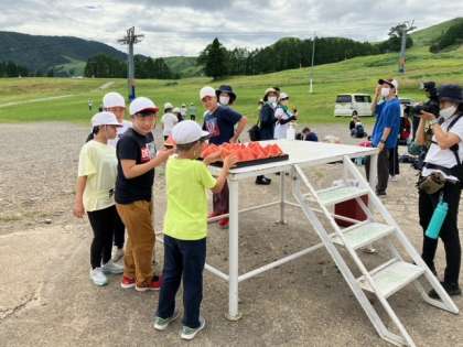 高丸山山頂より下山し、おやつタイムのスイカをいただきました。スイカの甘さが、疲れを吹っ飛ばしてくれました。